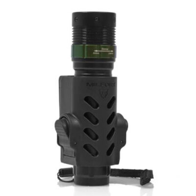 Porta Linterna. Permite alojar la linterna rápida y segura, su diseño proporciona un ajuste confiable, posee 2 seguros laterales de fácil activación los cuales garantizan la sujeción de la linterna. Material de fabricación Polímero inyectado de alta resistencia al impacto.