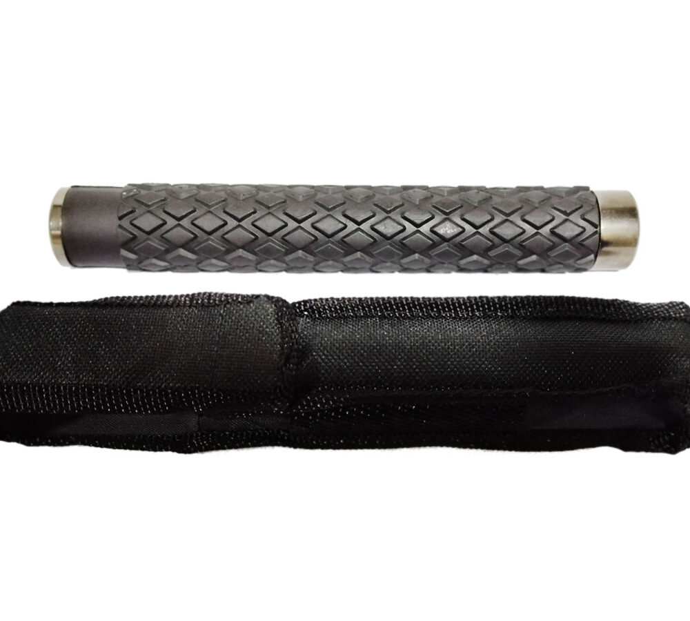 Tambo para defensa personal en acero niquelado, plegable (retractiles) para mayor comodidad al cargarlo, incluyen estuche para llevarlo cómodamente y cuenta con mango en caucho antideslizante.