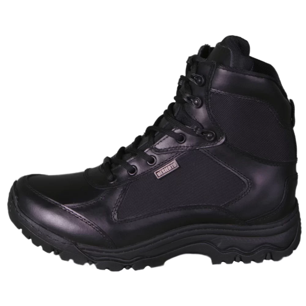 Botín Candelaria Negro, elaborado en cuero liso, lona impermeable de alta durabilidad, suela liviana en caucho resistente y antideslizante, cocidas y vulcanizadas, caña de 18 cm, acolchado interno térmico suave y plantilla suave y cómoda.