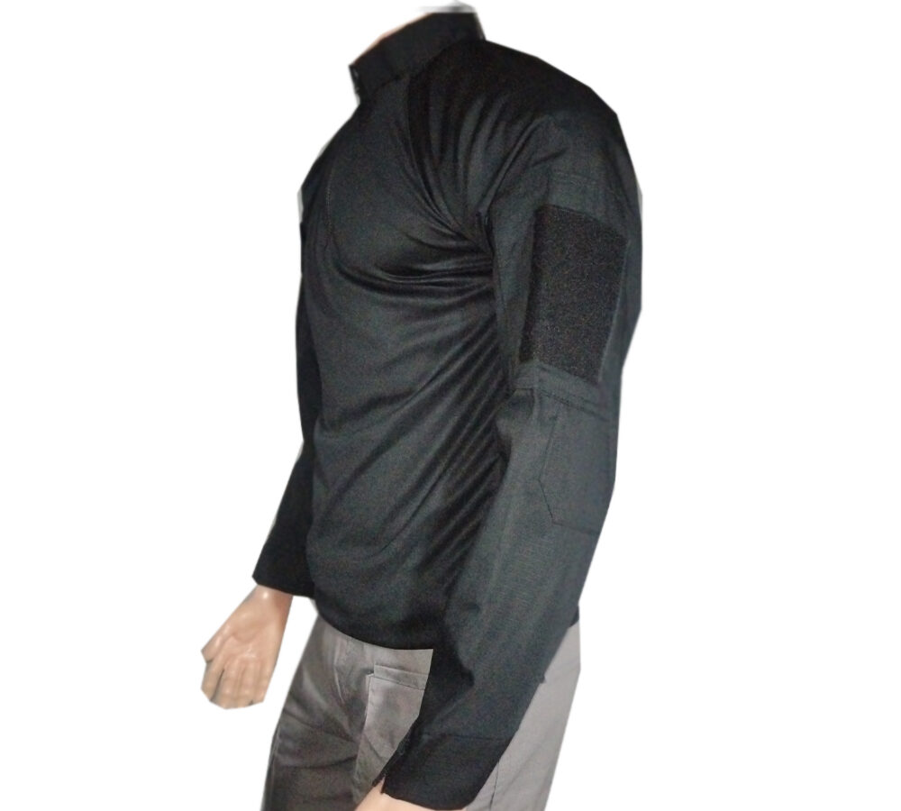 Elaborado en un 70% en lycra o tela fría y 30% tela Dril Ripstop o tela galleta, equipado con velcros en brazos y puños.