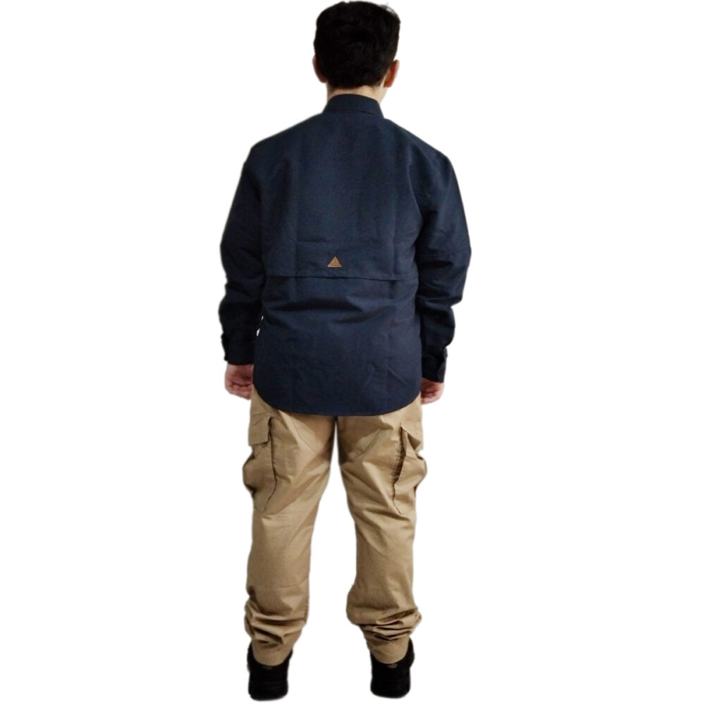 Camisa elaborada en tela Dril Ripstop lisa tipo durazno (Esmerilada), tejido que es muy resistente, por lo que es muy fácil de cuidar y mantener. Se puede lavar en la lavadora o a mano frotando con un paño húmedo y algún jabón de detergente común.