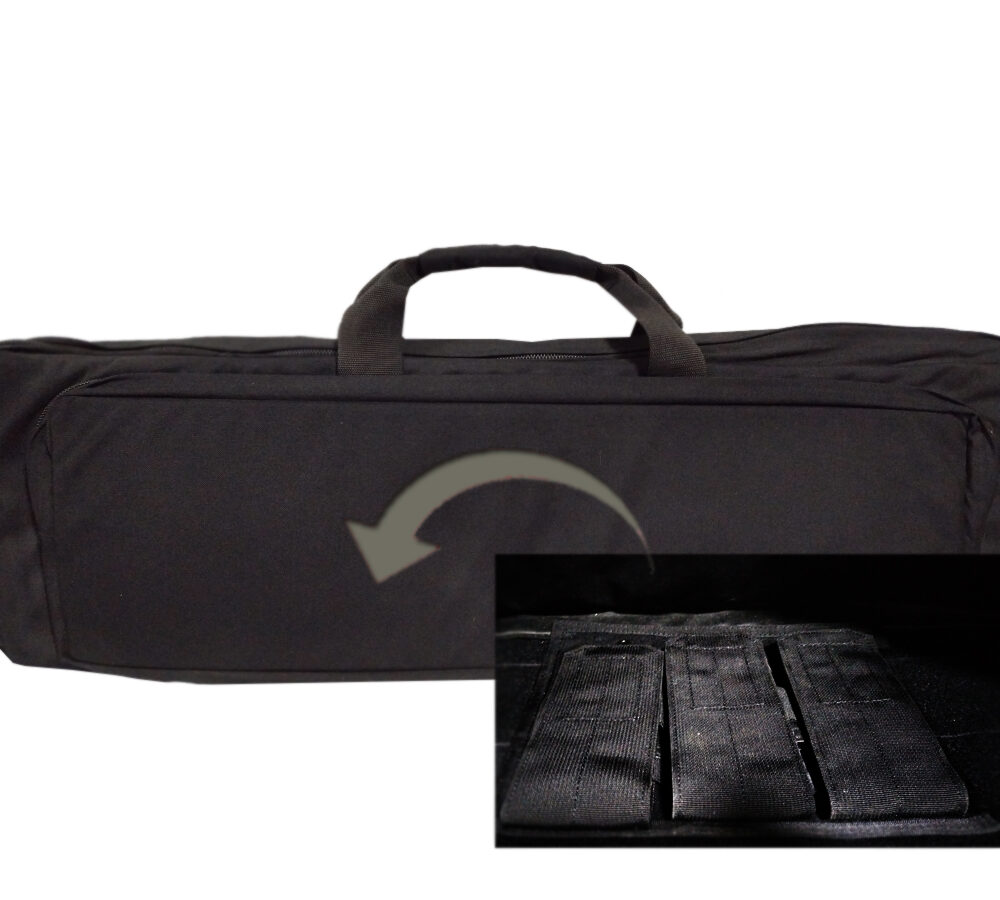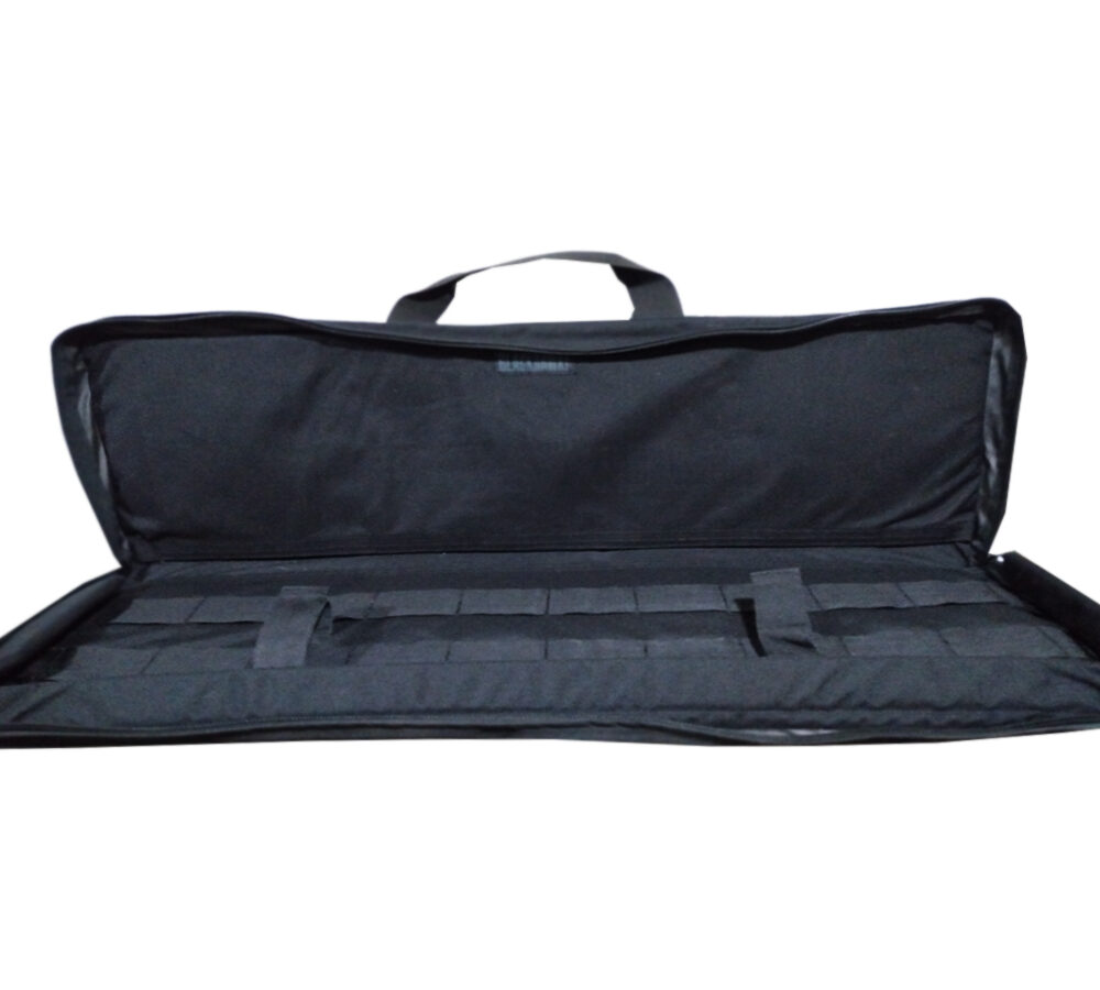 Estuche, funda o maletín para transportar armas largas (Tipo Ar-15, M4, M16) y accesorios de manera confortable y discreta con el estuche homeland security. Posee un bolsillo externo con cierre que incluye apliques con velcro para colocar cargadores (proveedores)