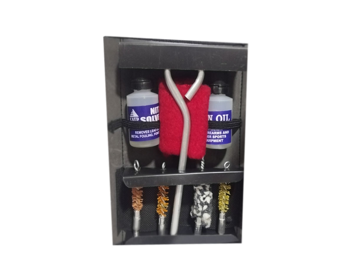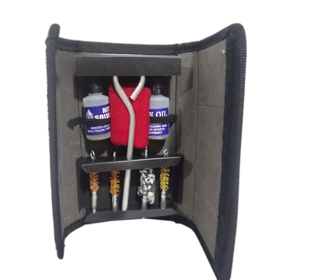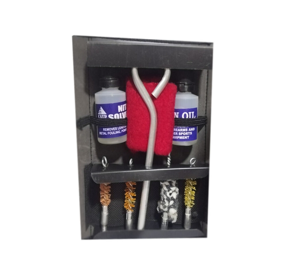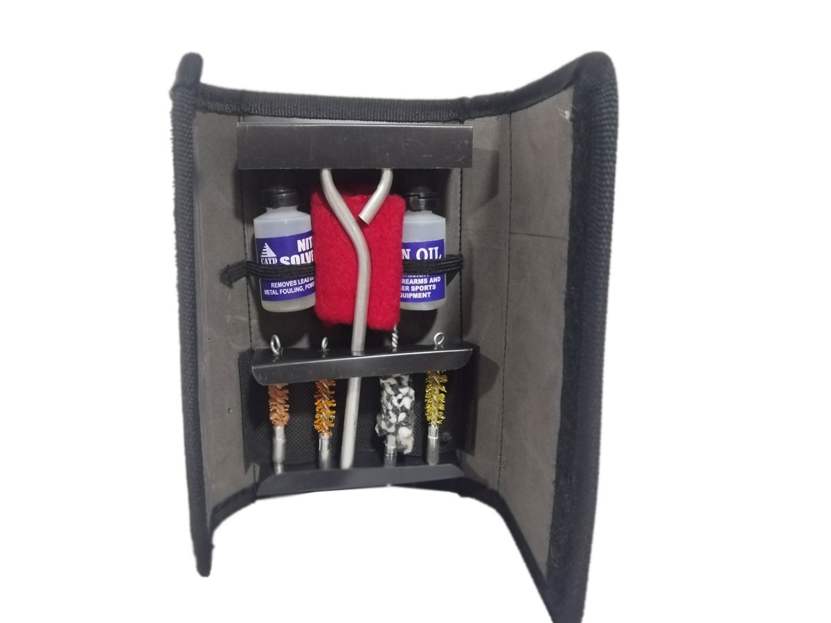 Kit De Aseo Para Revólver o Pistola 9MM, ideal para todos los cazadores entusiastas o integrantes de esquemas de seguridad. Incluye las herramientas necesarias para mantener su arma de fuego en óptimas condiciones, además de otorgar un fácil transporte. Una limpieza adecuada cuidará su arma preservando su valor y rendimiento.