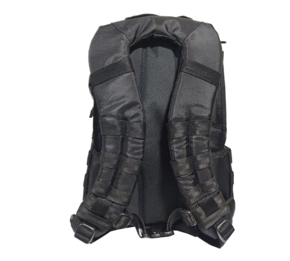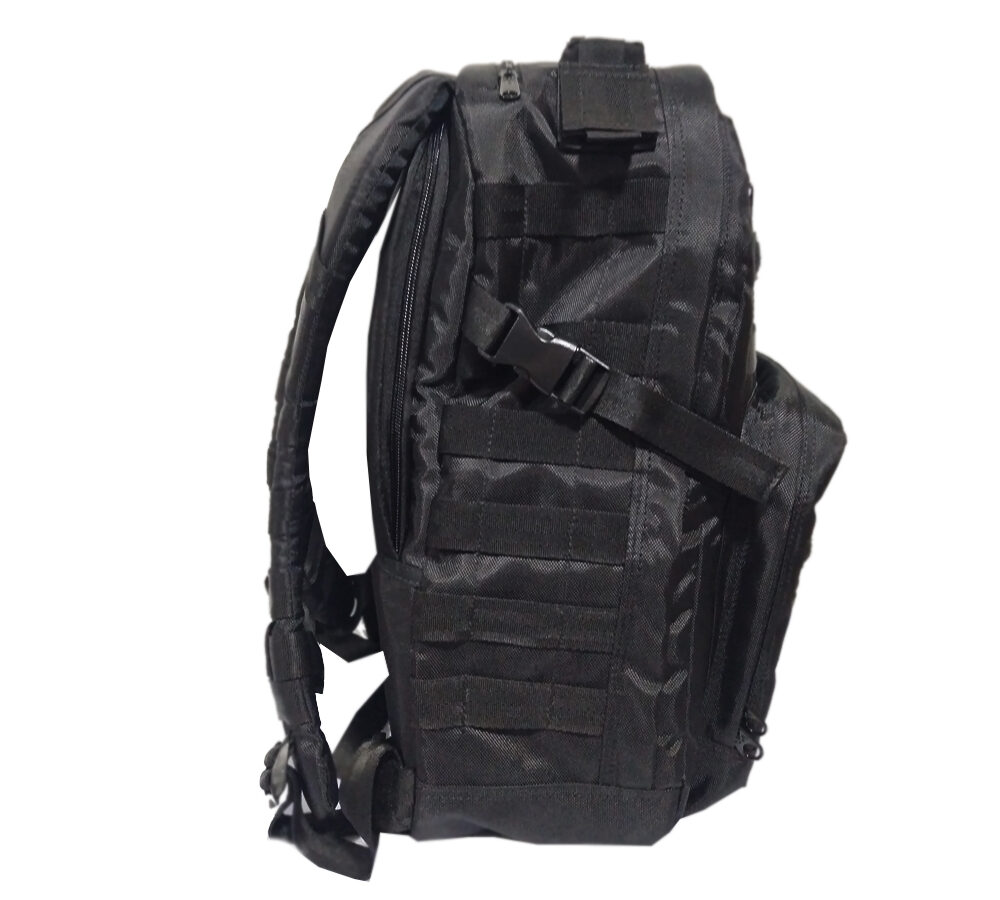 Morral multiproposito tipo rush elaborado en lona de alta resistencia e impermeable. Dimensiones 40 x 30 x 15 cm personalizado. Cuenta con 8 compartimentos, espacio para bolsa de hidratación o PC, incluye bolsillo secreto en el espaldar. El panel trasero es acolchado de malla, correas de hombro contorneadas con correa de esternón de liberación rápida y correa de cintura. Capacidad en litros 30 aproximadamente.
