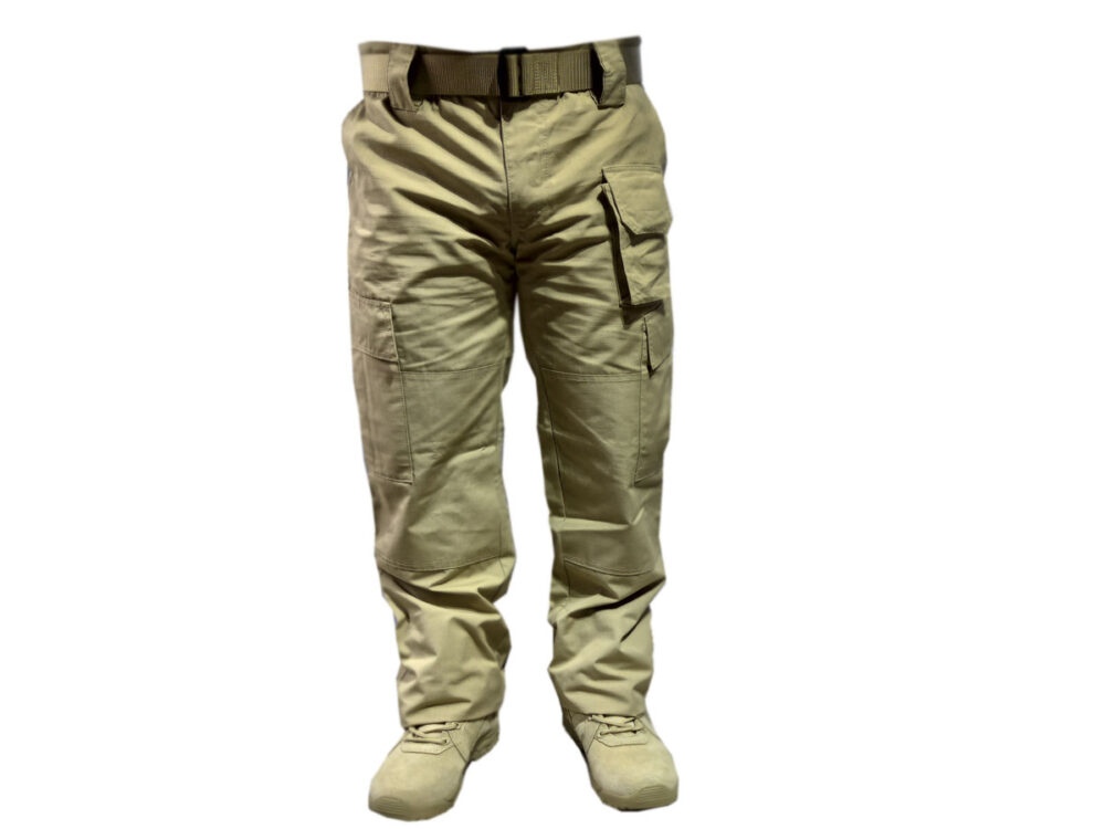 Pantalones tácticos Desierto, elaborados en dril ripstop, equipado con cuatro bolsillos laterales, dos bolsillos posteriores y un bolsillo delantero, cremallera resistente.