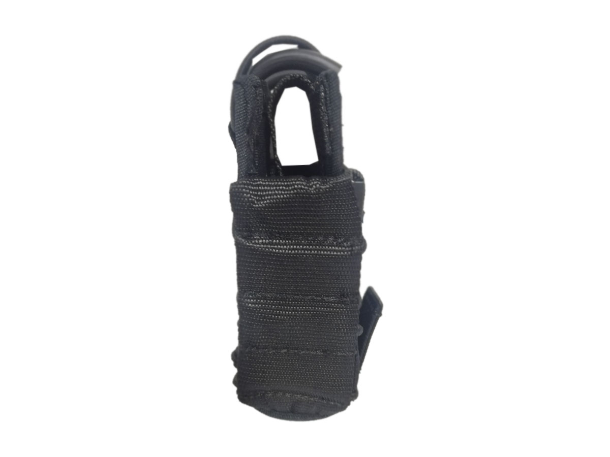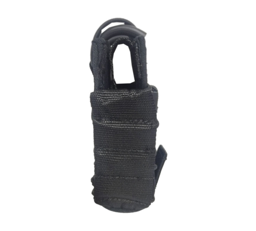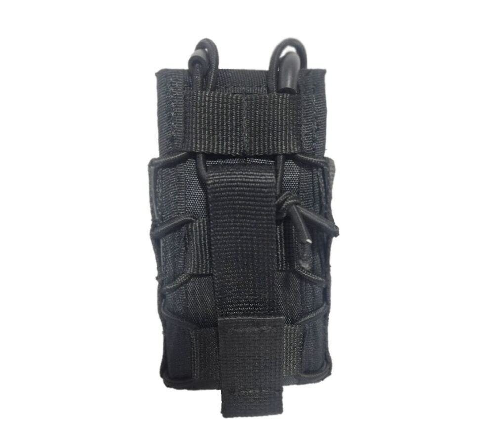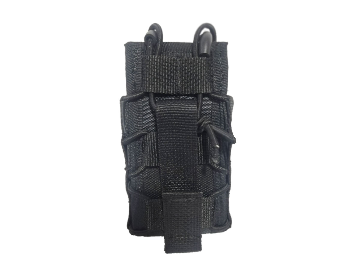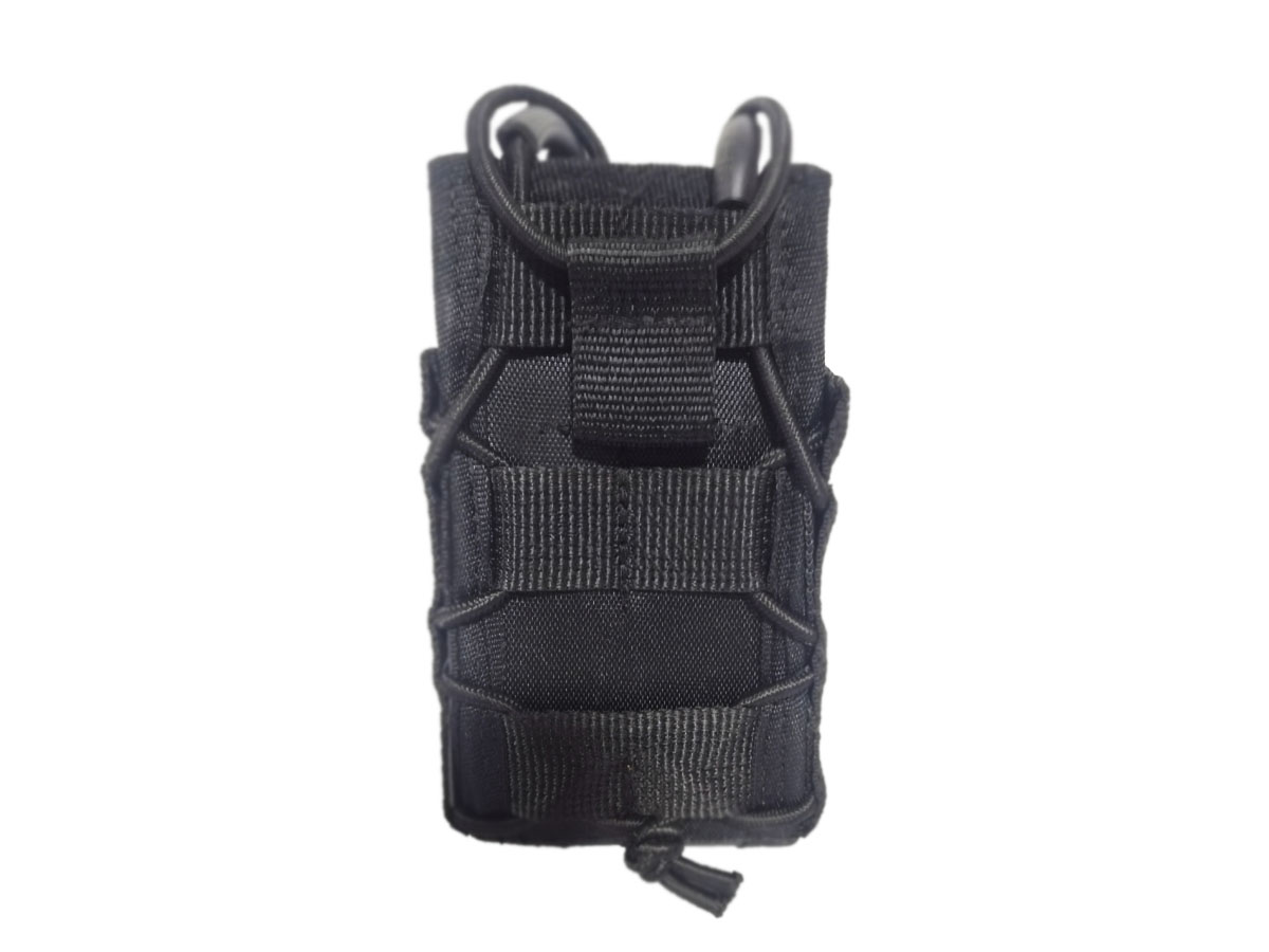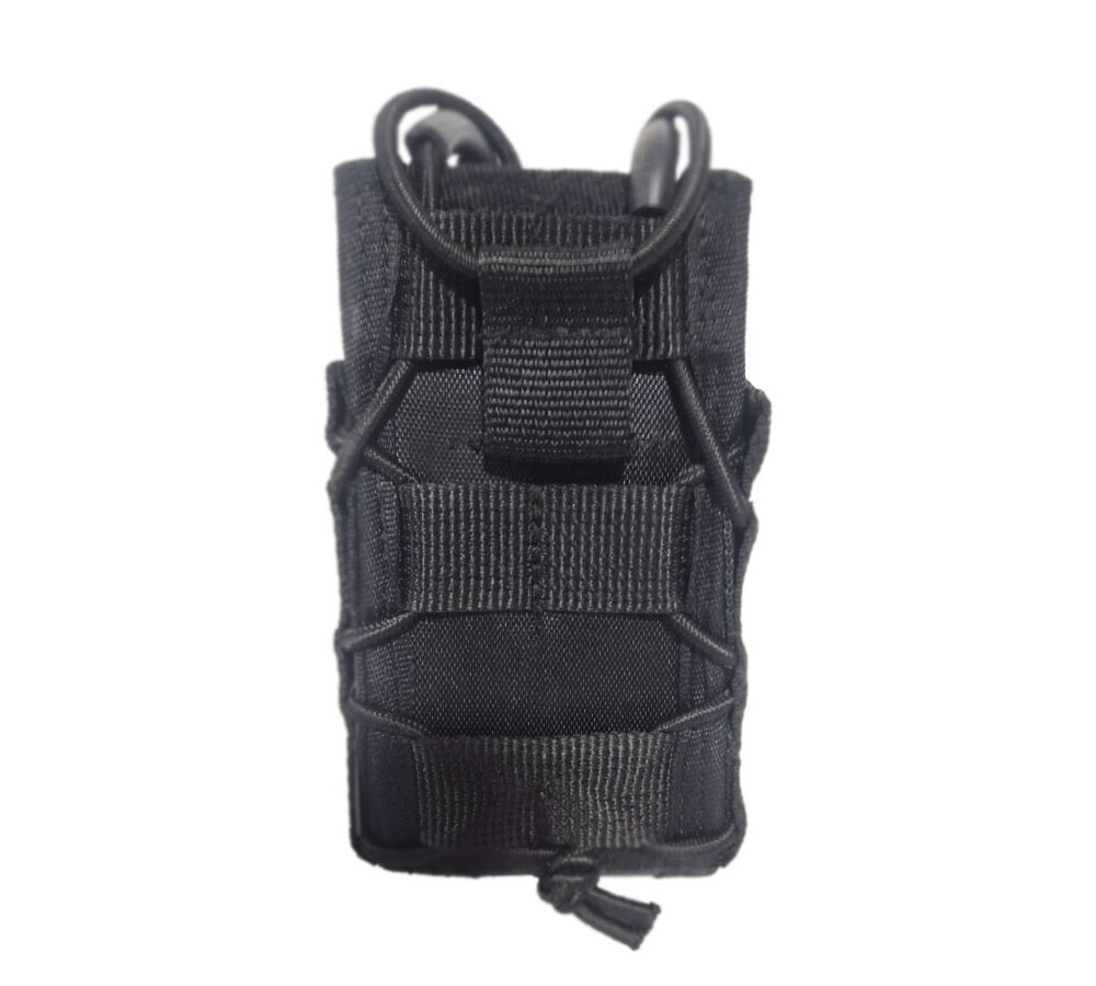 Porta radio elaborado en lona de alta resistencia y apliques en poliuretano y en caucho resistente. Cuenta con un sistema de extracción rapida del radio, ajustes en velcro y sistema moll. Medidas 16 Cm de alto X 8 CM de ancho X 5CM de fondo.