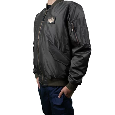 Chaqueta tipo piloto elaborada en tela impermeable calidad Lafayette, cremalleras de alta resistencia y cuello y puños licrados y resistentes.
