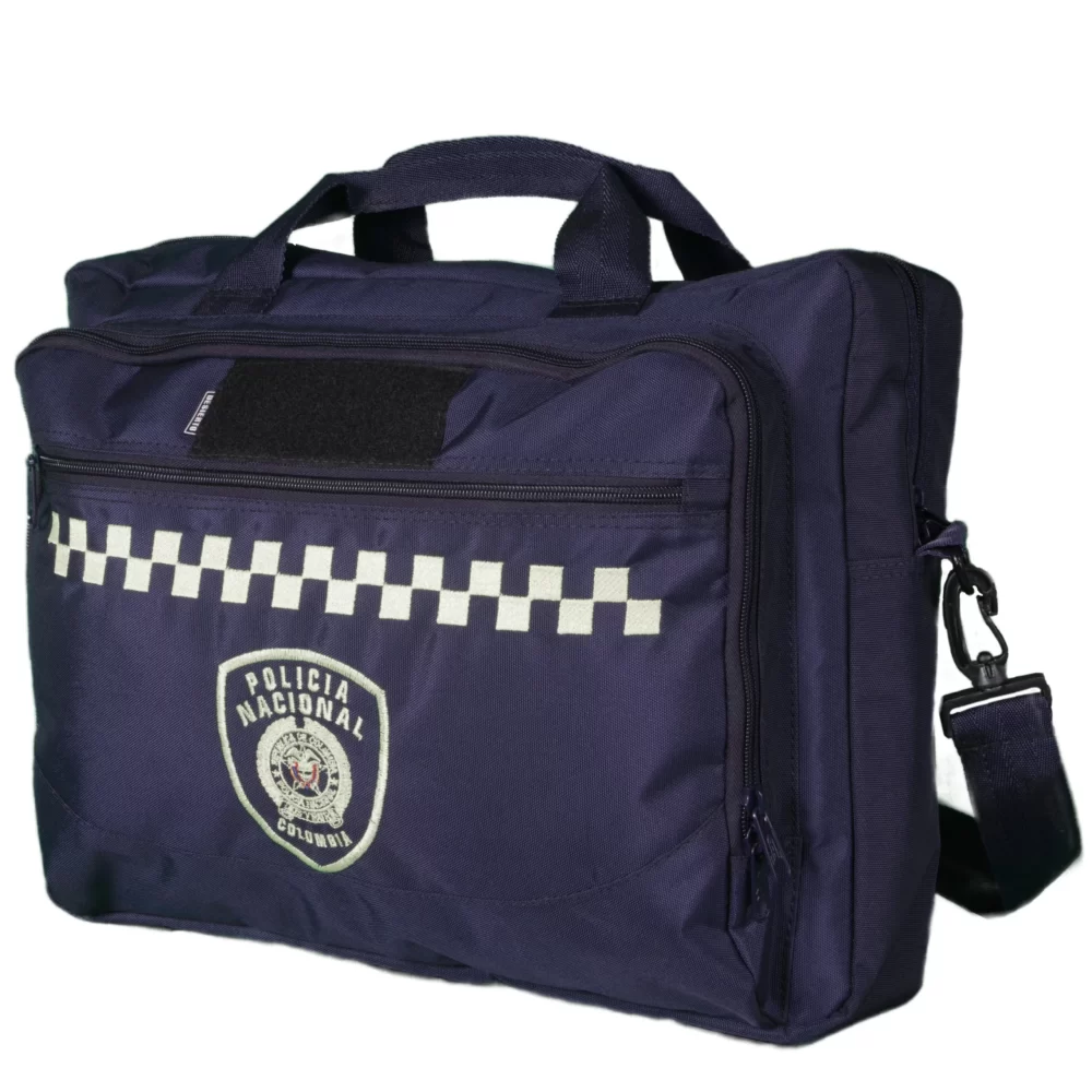 Elaborado en lona impermeable con medidas de 48 centímetros de ancho por 38 centímetros de alto por 14 Cm de fondo. Cuenta con un compartimento grande, un compartimento externo horizontal de 38 centímetros con cremallera y un compartimento posterior, manija y soporte a hombro.