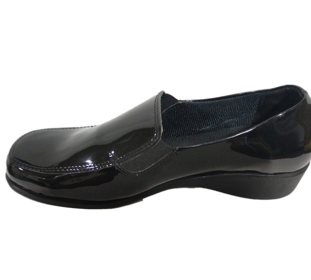 Zapato elaborado en charol, suela en poliuretano (PU) liviana, resistente y vulcanizado, recubrimiento interno en poliéster, plantilla suave y resistente